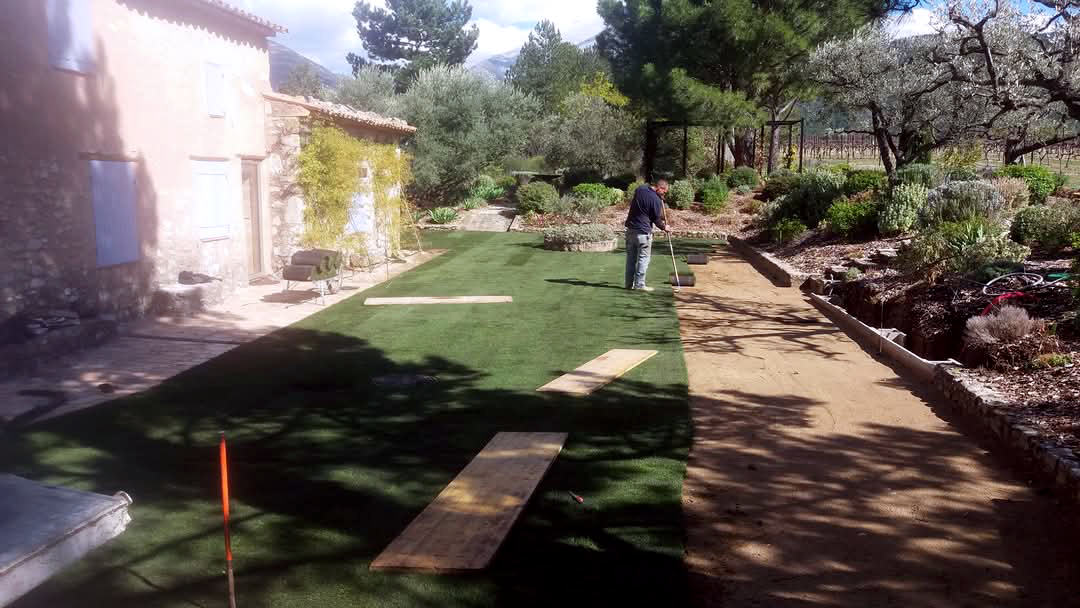- Pose de gazon en plaques.
