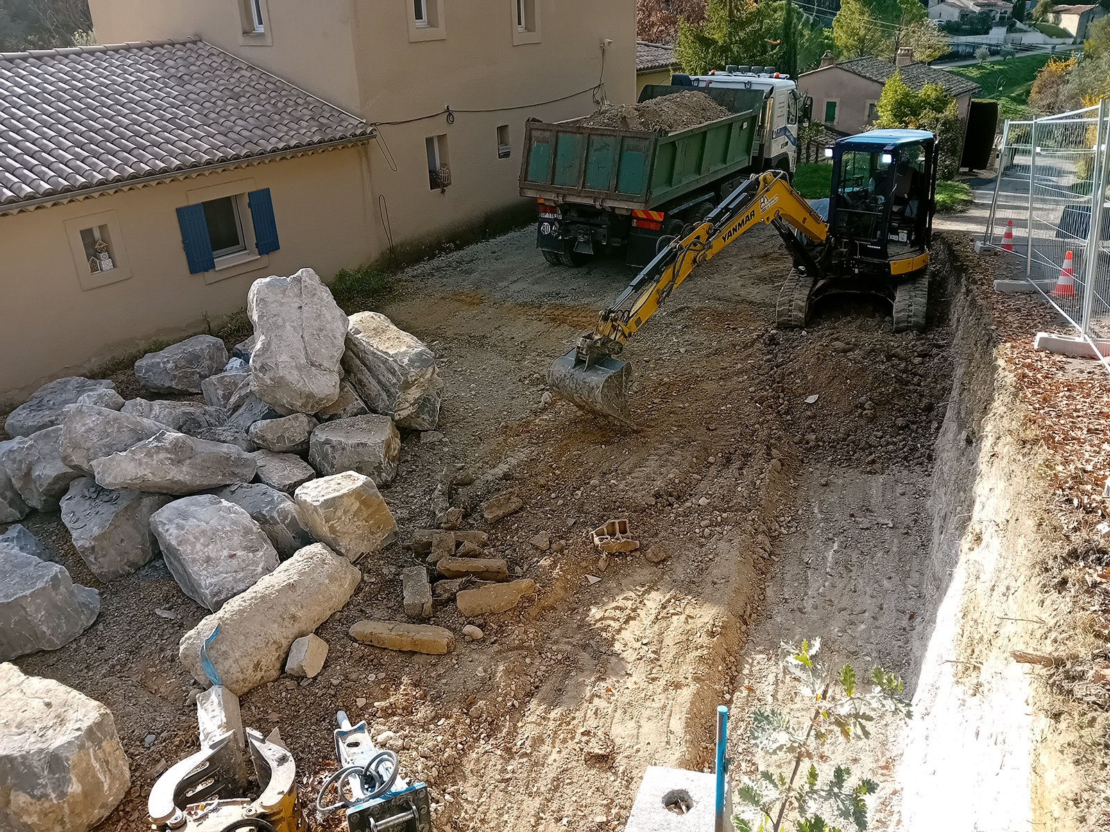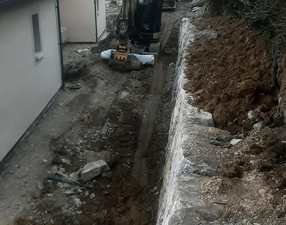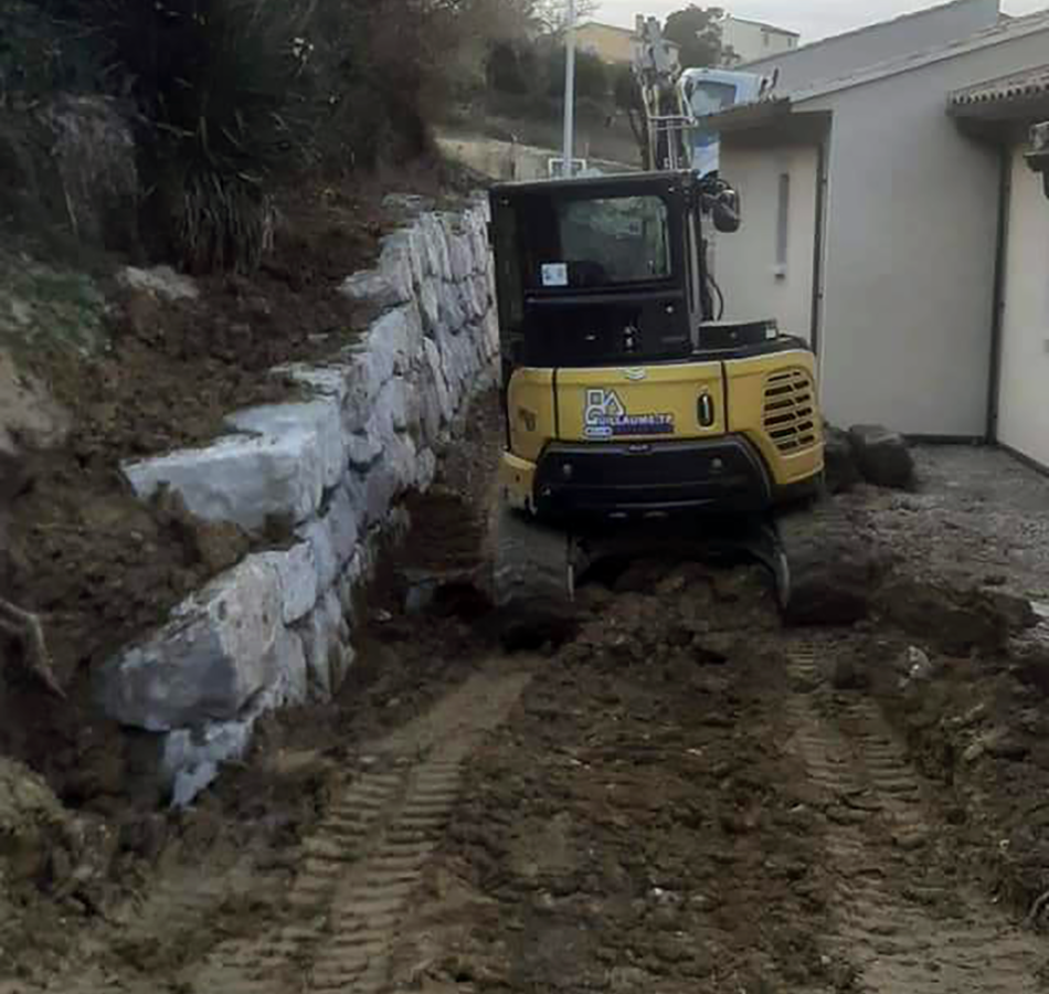 - Terrassement pour accueillir l’enrochement
