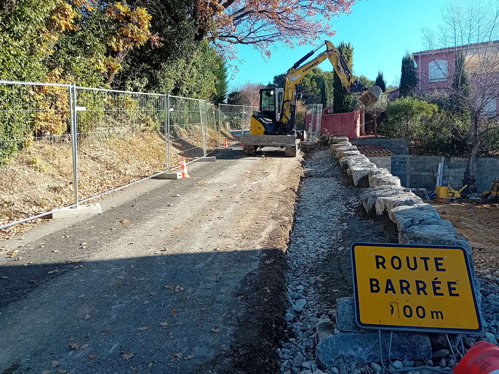 Réalisation par GUILLAUME TP : Tout d’abord, arrêté de circulation et balisage du chantier afin de permettre aux engins de travailler.